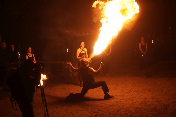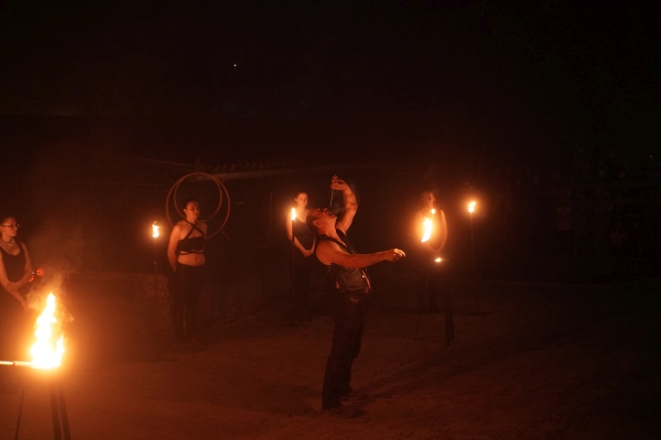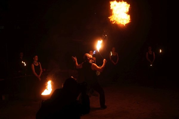 Feuershow beim Sommerfest am Bücherturm in Dürnau