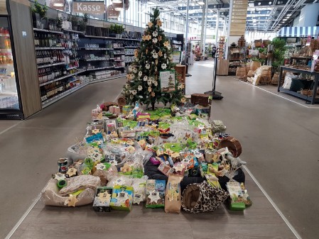 Im Rahmen der Weihnachtsaktion vom Dehner in Göppingen, durften wir an einem Weihnachtsbaum, Wünsche mit Geschenken für unsere Tiere anbringen. Die Kunden nahmen den Wunsch ab und kauften das entsprechende Geschenk, dieses wurde dann unter den Baum gelegt. Das Ergebnis ist unglaublich erfolgreich.