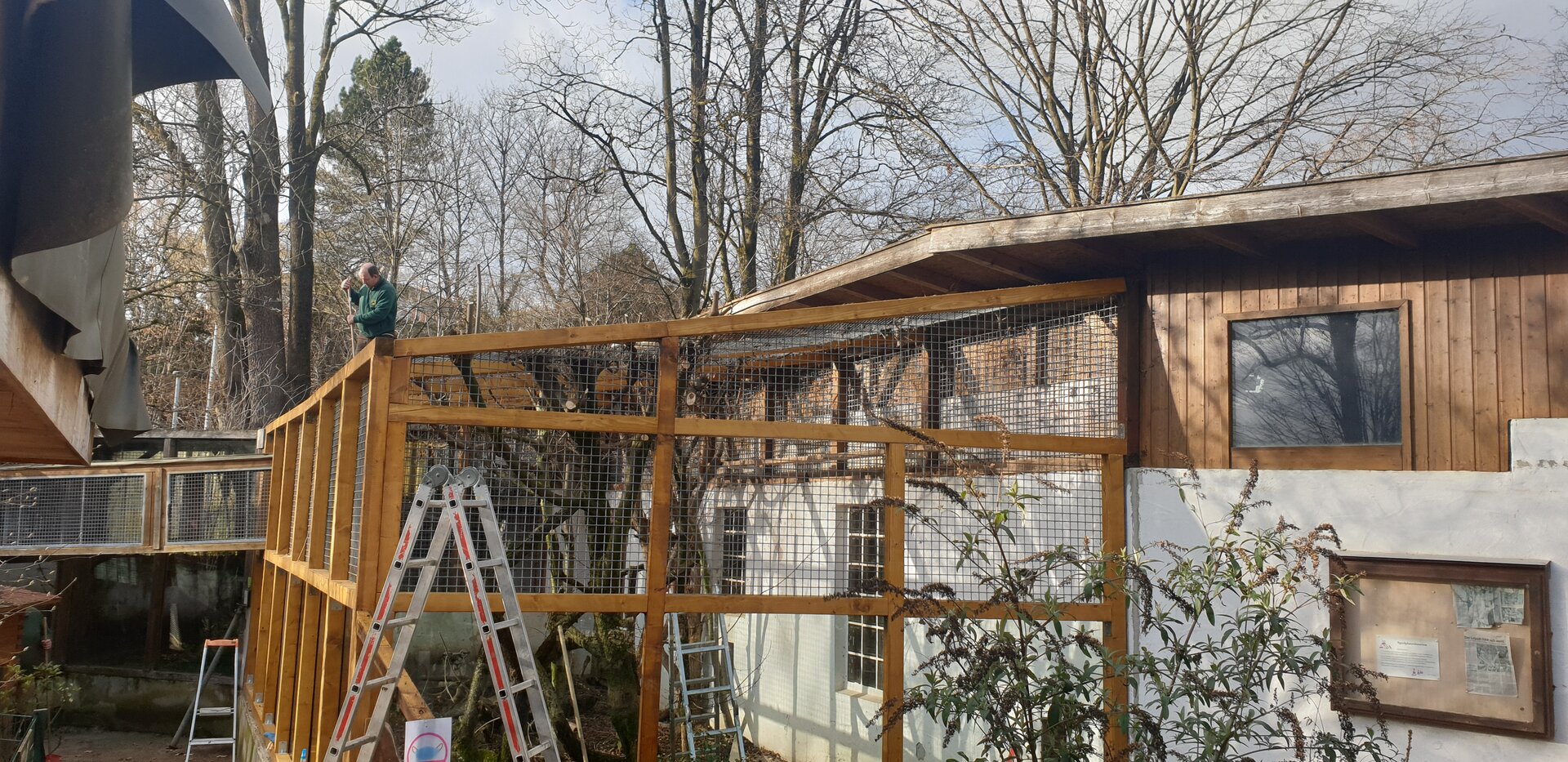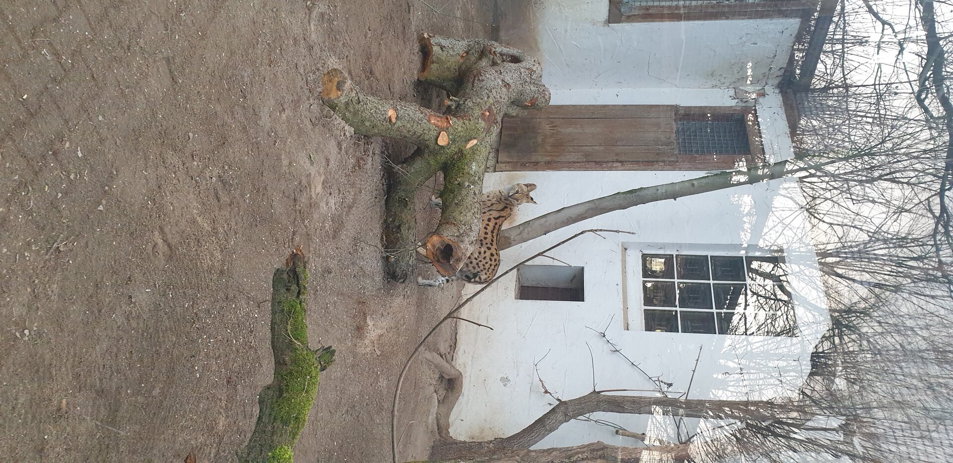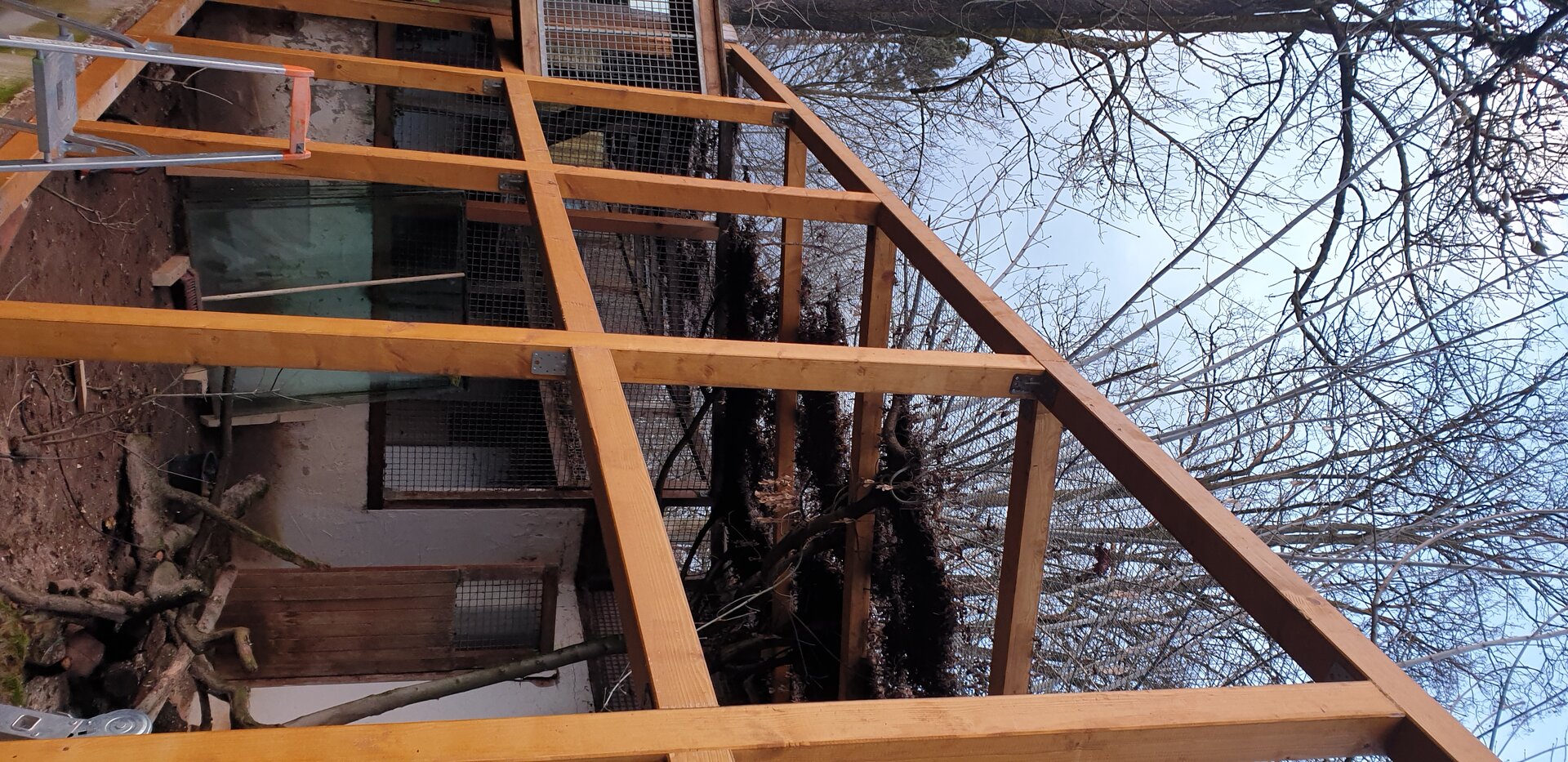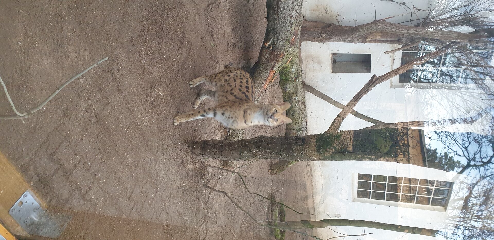 ...heute (14.02.2022) wurde mit der Renovierung des Außengeheges der Servale begonnen, Glas und Gitter wurden entfernt. Nachdem am zweiten Tag die Vorderfront und die Dachsparren erneuert wurde, kam am dritten Tag die Seite dran. Am letzten Tag wurden Gitter montiert, die Glasscheiben eingestzt, Bäume die oben durch das Gitter wuchsen geschnitten und das Laub runtergeblasen. Jetzt kann man auf den Dachsparren wieder gehen. Dadurch wurde das Gehege wieder schön hell. Innen kam ein neuer Baumstamm rein. Dann das Gehege gereinigt, die Scheiben geputzt und der Serval durfte am Abend noch ein paar Runden in seinem fast neuen Gehege laufen.