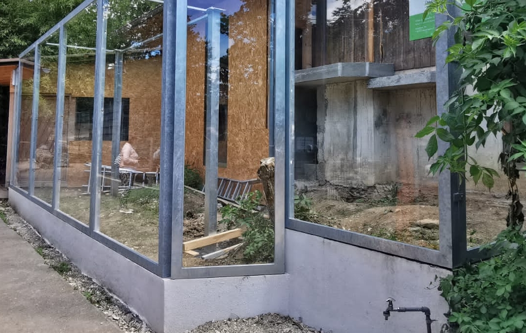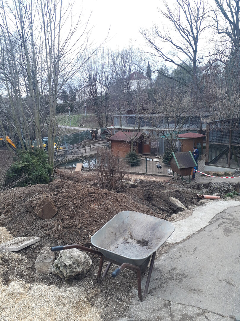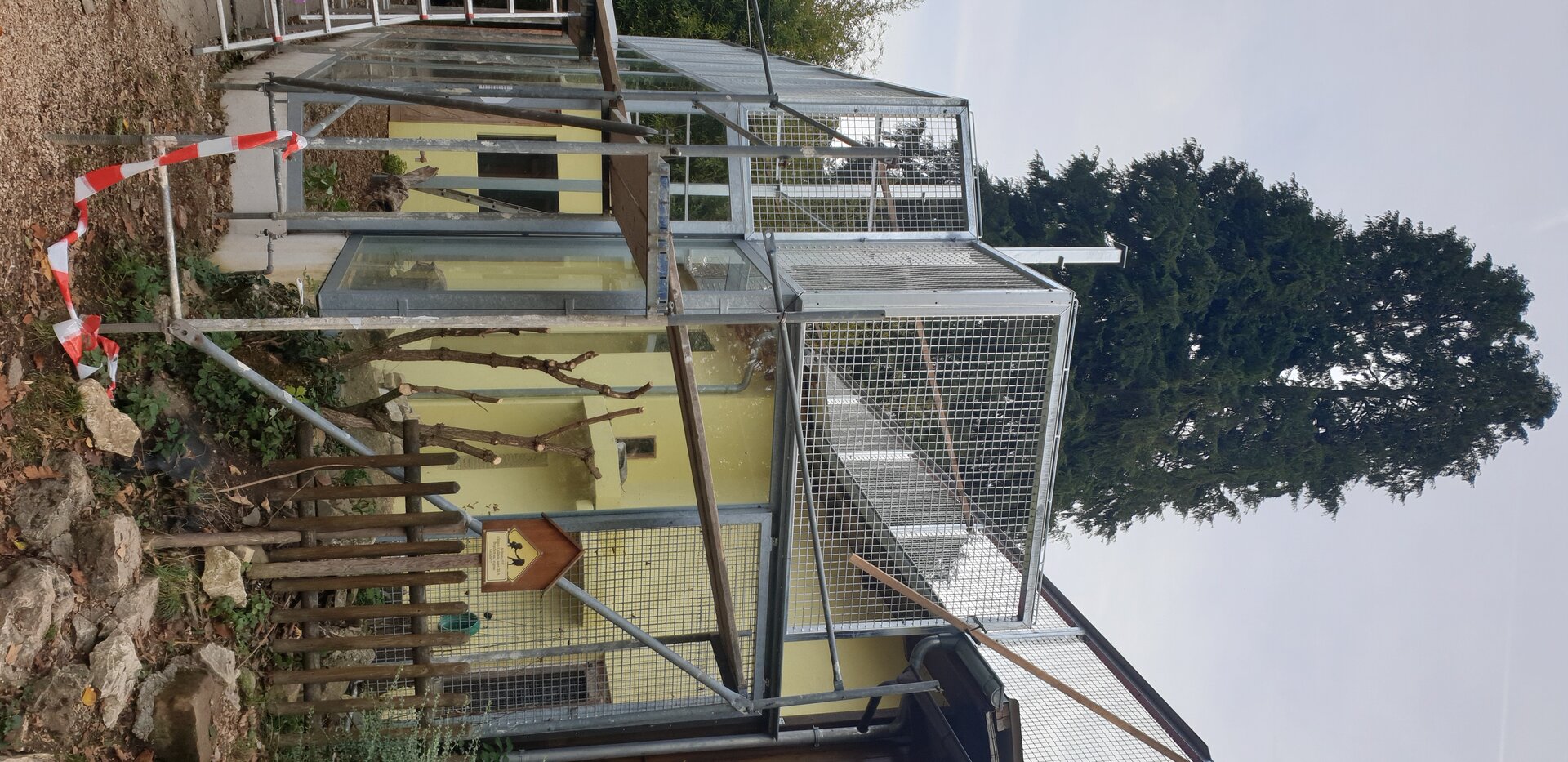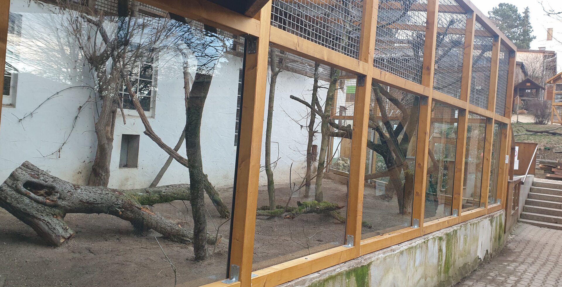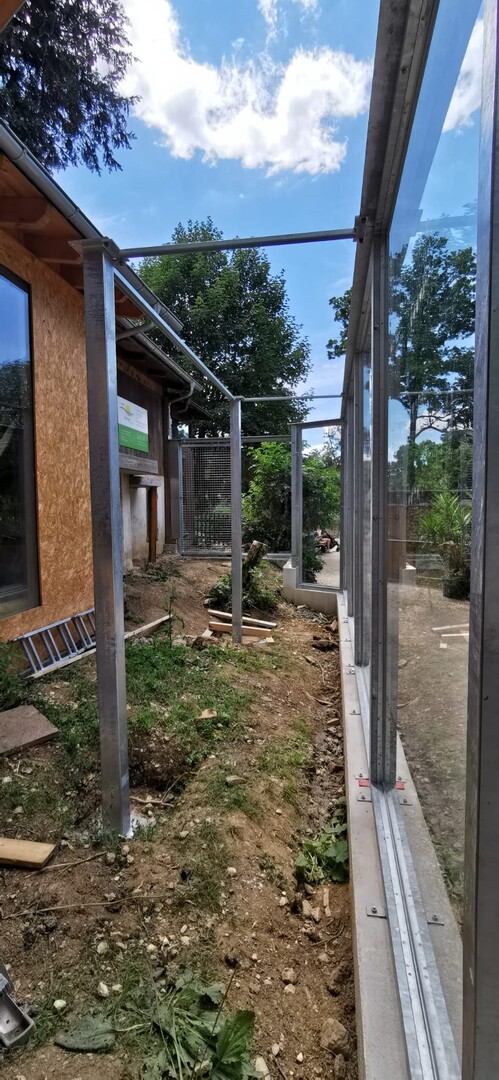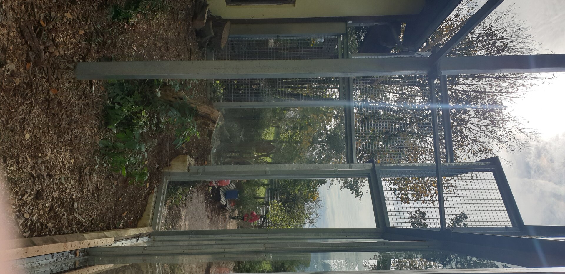 ...heute (14.02.2022) wurde mit der Renovierung des Außengeheges der Servale begonnen, Glas und Gitter wurden entfernt. Nachdem am zweiten Tag die Vorderfront und die Dachsparren erneuert wurde, kam am dritten Tag die Seite dran. Am letzten Tag wurden Gitter montiert, die Glasscheiben eingestzt, Bäume die oben durch das Gitter wuchsen geschnitten und das Laub runtergeblasen. Jetzt kann man auf den Dachsparren wieder gehen. Dadurch wurde das Gehege wieder schön hell. Innen kam ein neuer Baumstamm rein. Dann das Gehege gereinigt, die Scheiben geputzt und der Serval durfte am Abend noch ein paar Runden in seinem fast neuen Gehege laufen.