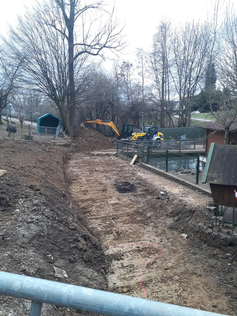 Im Tierpark sind im Lamagehege die Bauarbeiten, vor dem großen Regen, wieder ein Stück voran gegangen.