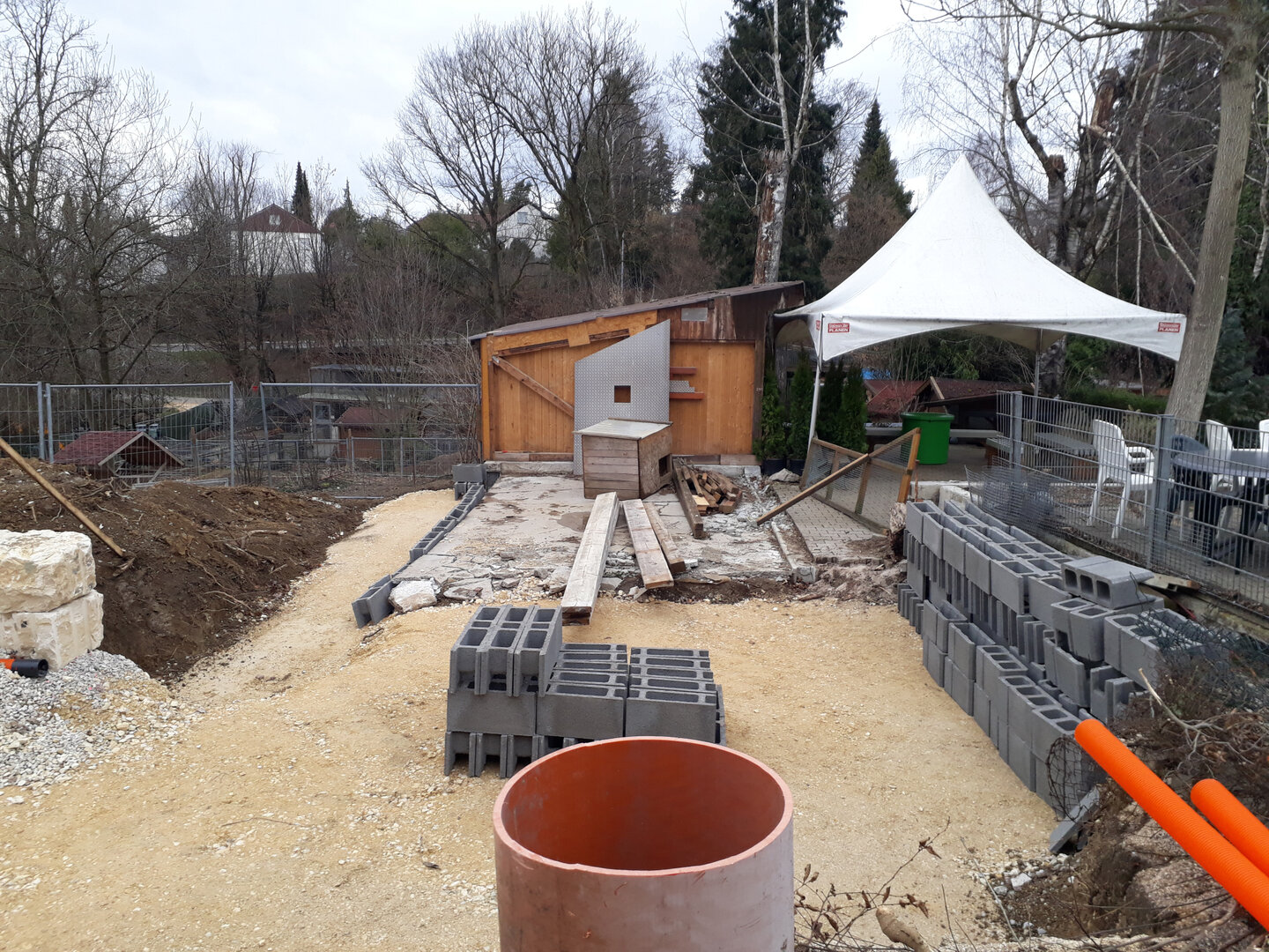 Die Terrasse und Warenanlieferung sind neu gepflastert. Die Lärmtrennwand ist bestellt und wir warten auf Lieferung. Wir möchten uns bei allen Besuchern bedanken, die in den letzten Wochen Lärm, Staub und holprige Wege akzeptiert und geduldig ertragen haben. Ebenso gilt der Dank der Firma Landschaftsgärtner Gugenhan, https://landschaftsgaertner-gugenhan.de/ , und seinen Mitarbeiter, die trotz der Herausforderung, der Normalbertrieb des Tierparks ging weiter, unermüdlich die Fertigstellung vorangebracht haben.
