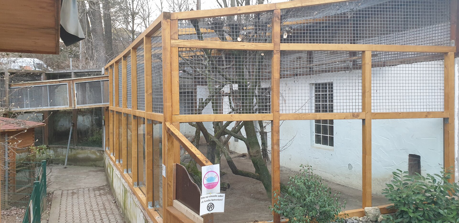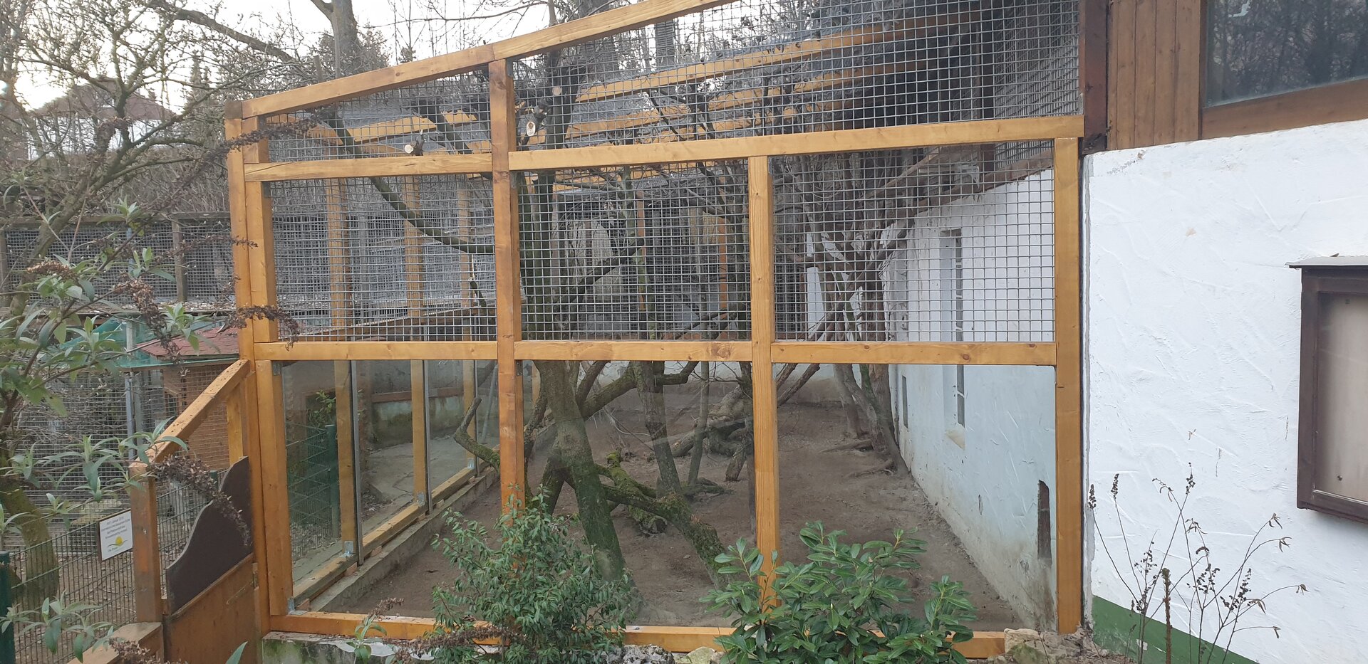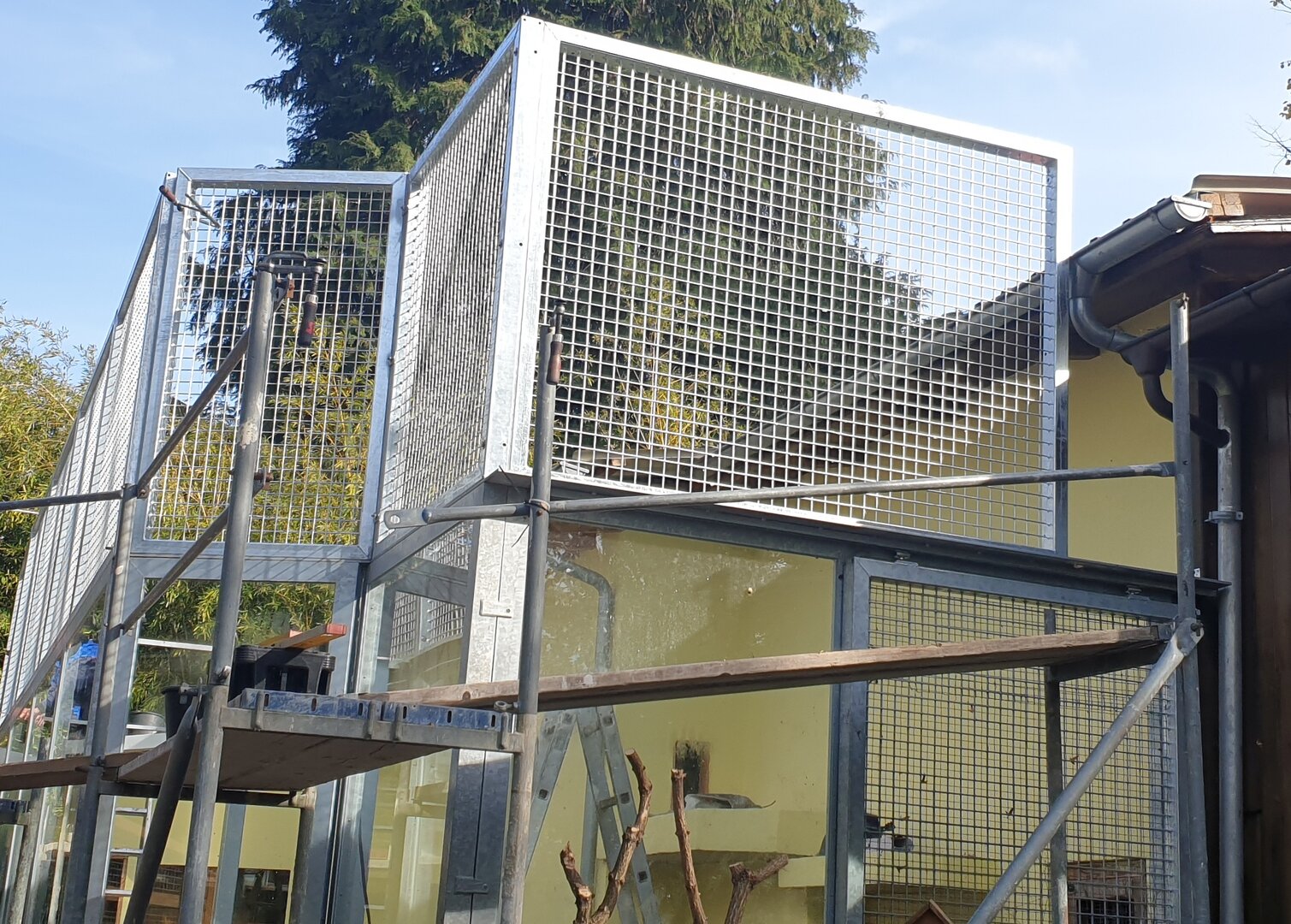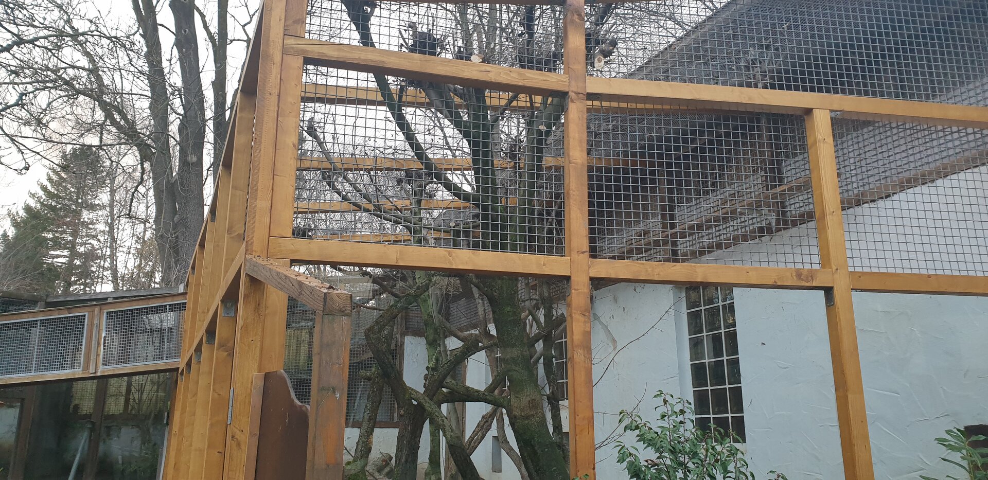 unser Kapuzinergehege ist fertig, alle vergebenen Arbeiten sind abgeschlossen. Das Innen- und Außengehege wird eingerichtet und unsere Kapuzinergruppe darf dann einziehen.