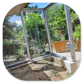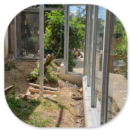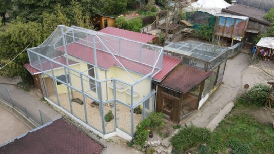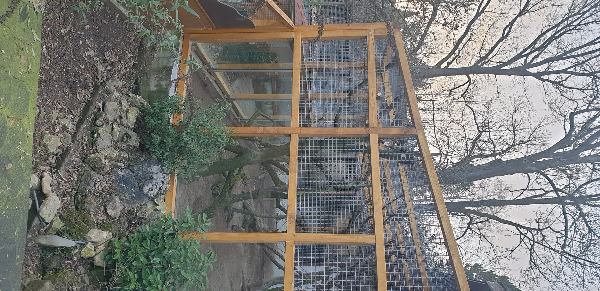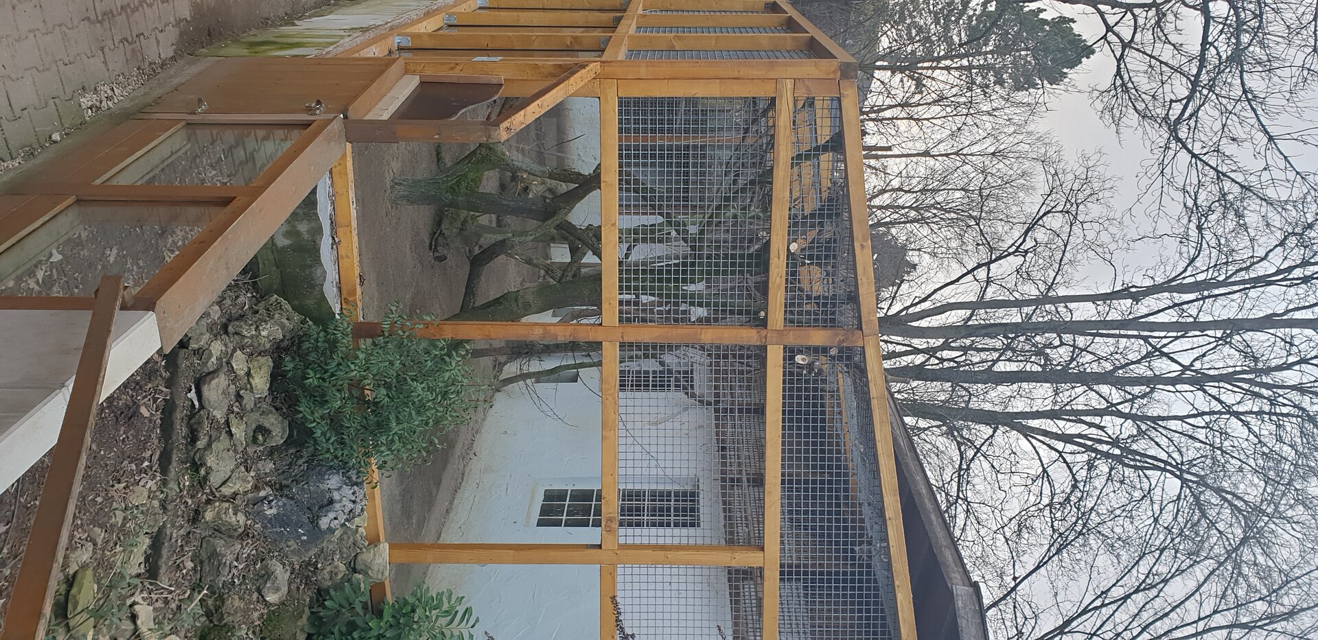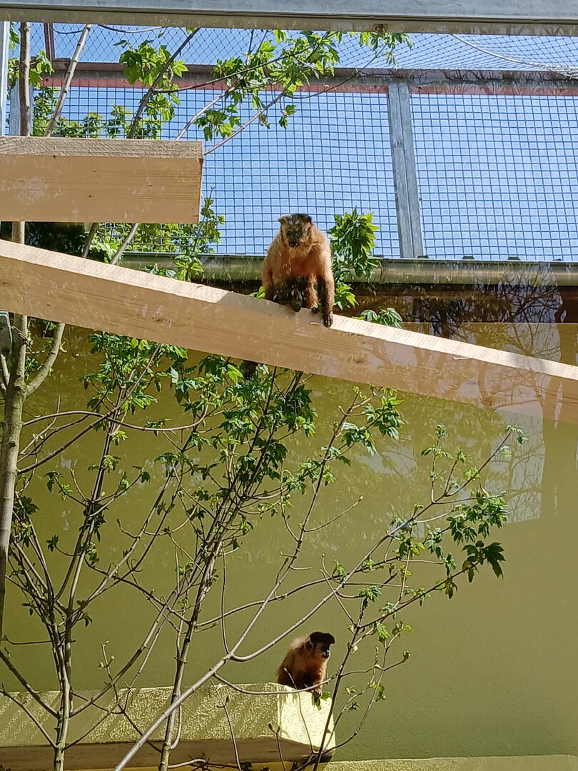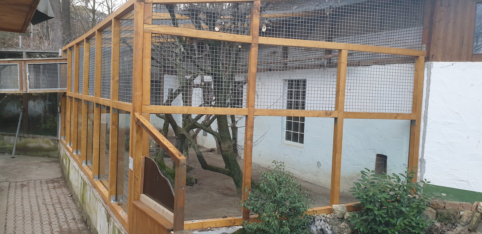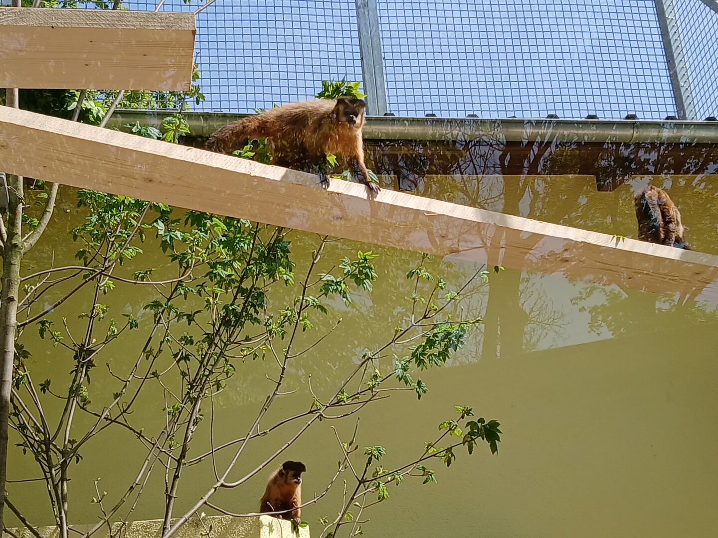 unser Kapuzinergehege ist fertig, alle vergebenen Arbeiten sind abgeschlossen. Das Innen- und Außengehege wird eingerichtet und unsere Kapuzinergruppe darf dann einziehen.