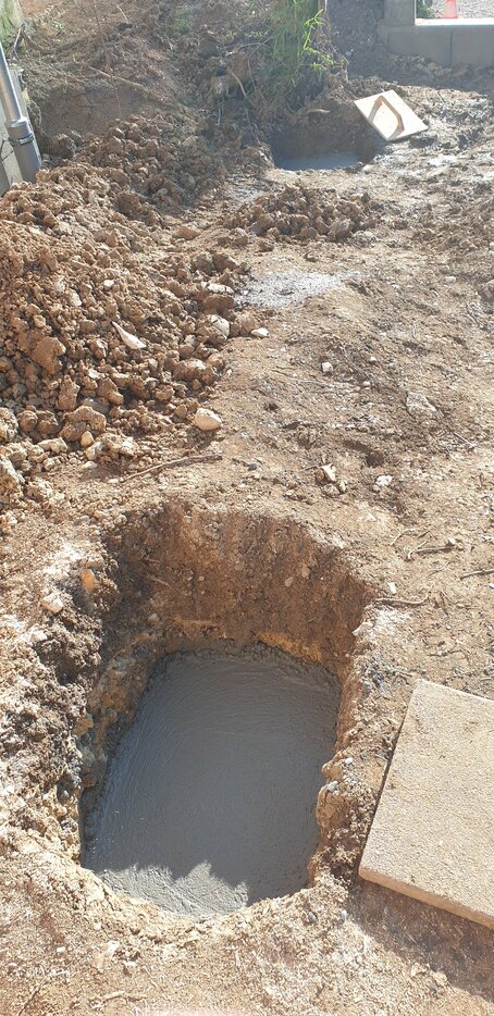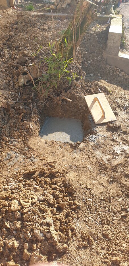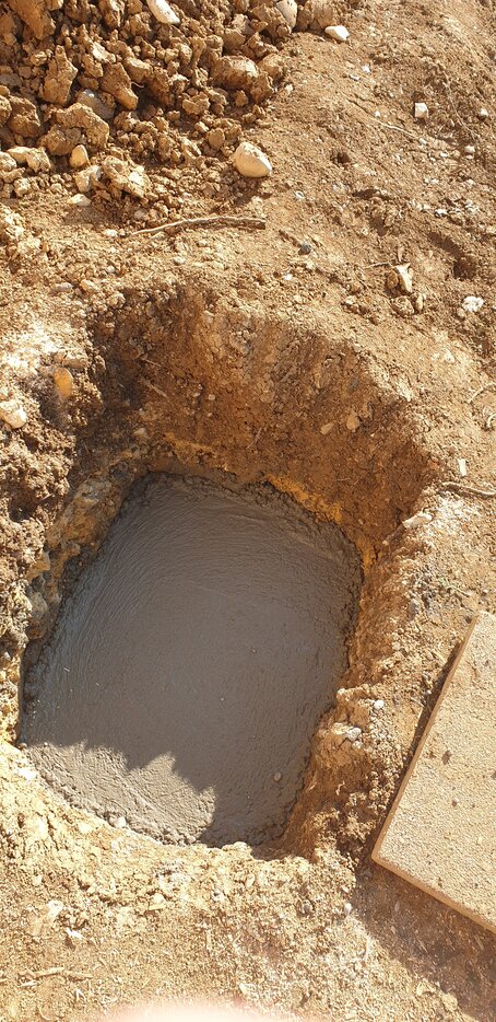 ... das Fundament für die Stützen der Netzabdeckung sind betoniert.