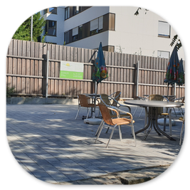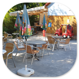 Das Team vom Der Kleine Tierpark Göppingen e.V. freut sich auf Ihren Besuch zum "Probesitzen" auf der Terrasse.