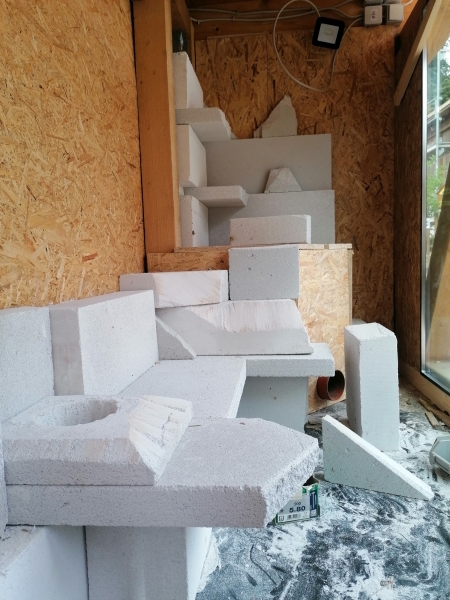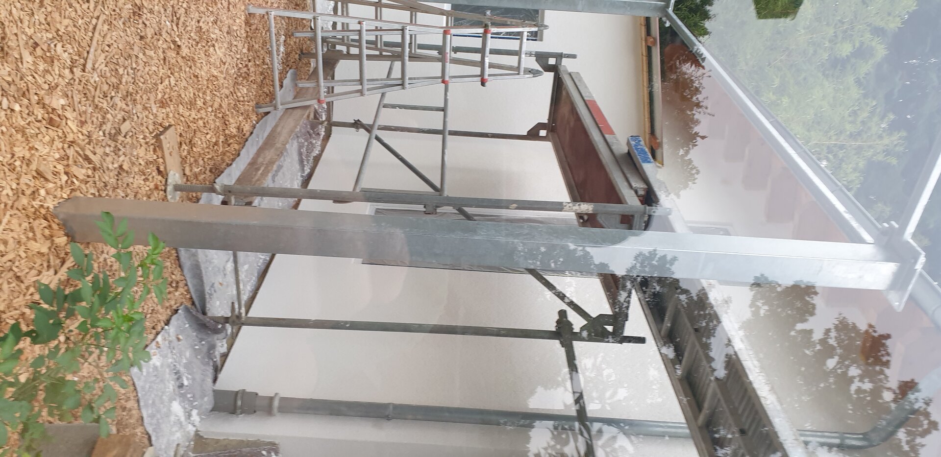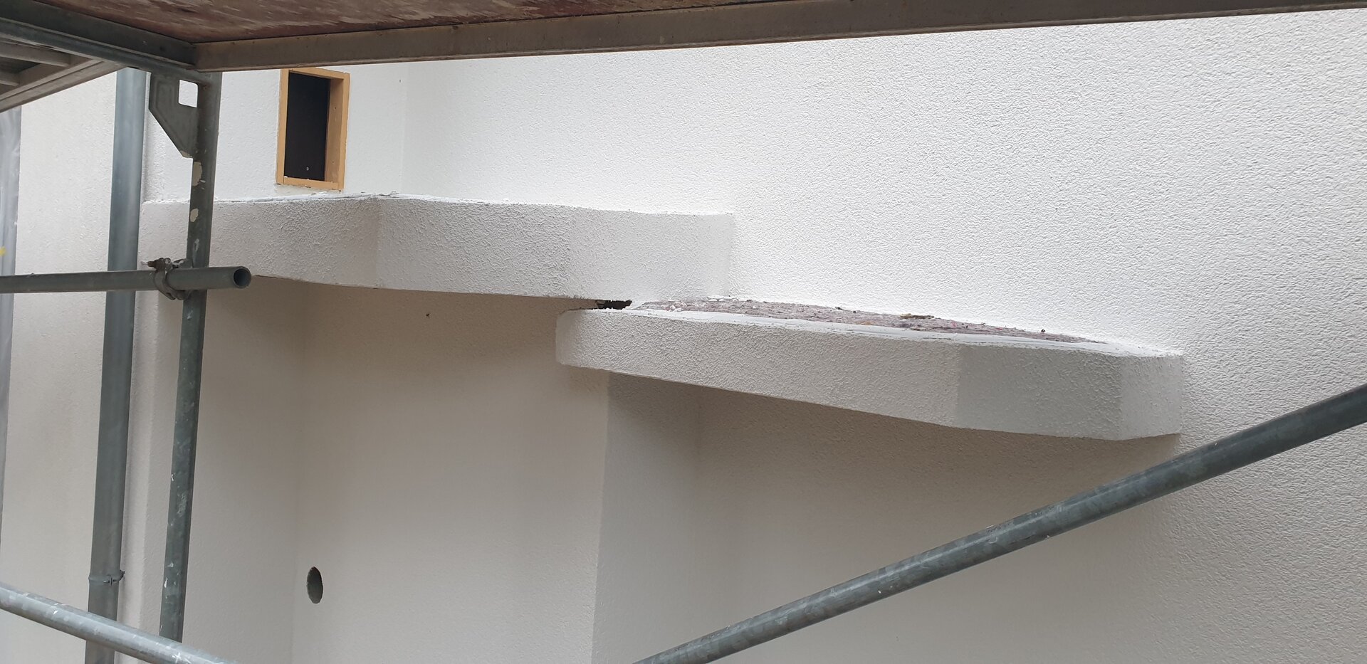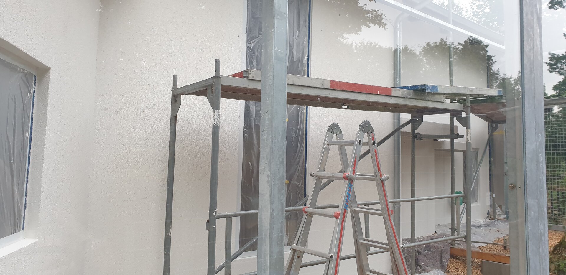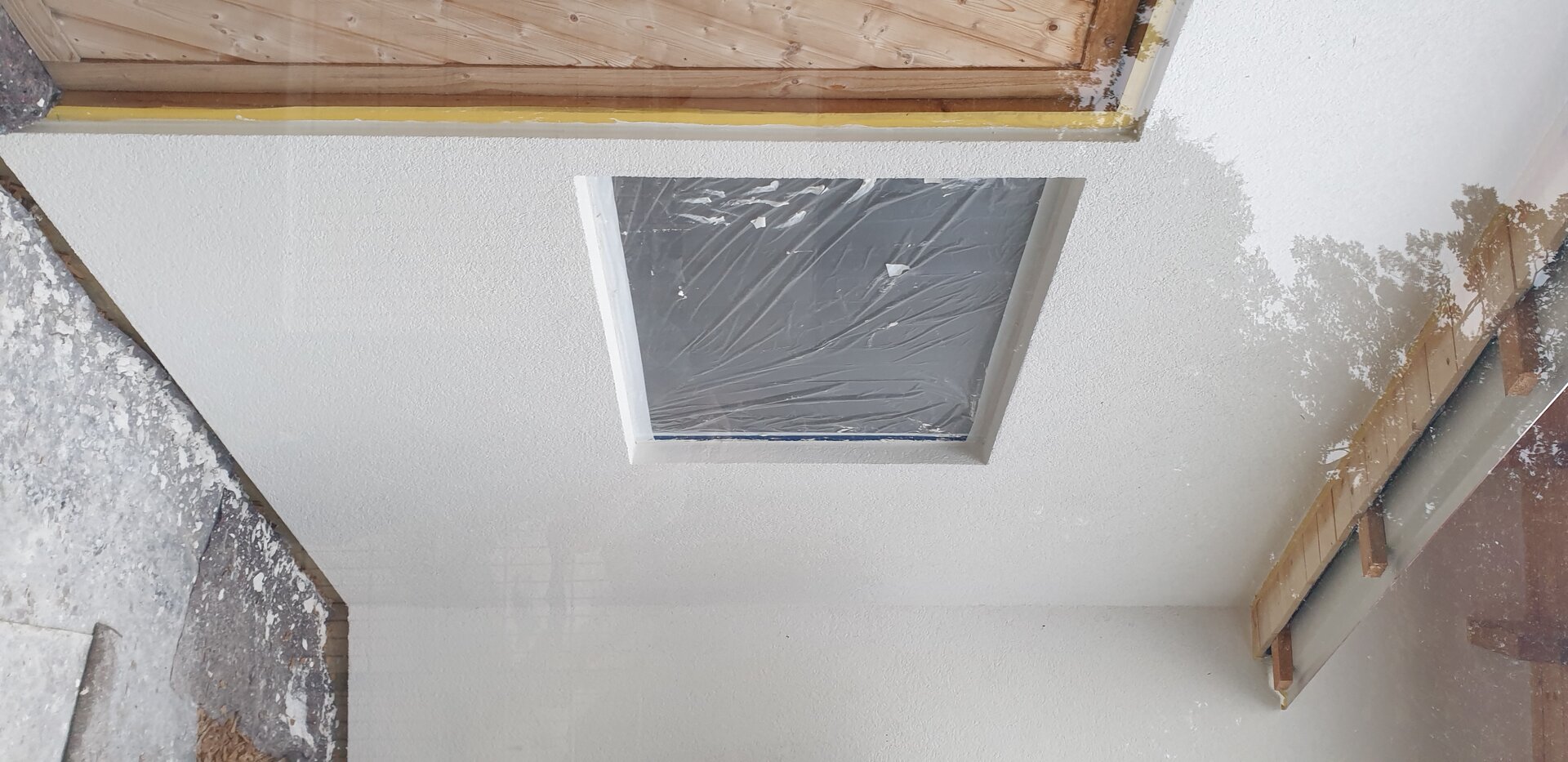 ...der Gipser hat die Wände gemacht, jetzt werden die noch in Eigenleistung gestrichen. Die Gitter für das nächst höhere Element wurde vom Schlosser vermessen und bestellt. Wir warten auf die Lieferung und Herstellung. Doch Lieferengpässe gibt es in jedem Gewerk.