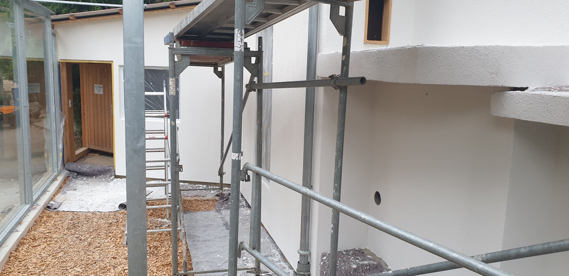 ... ein weiterer Schritt an der Gaststätte wurde fertig. Die Rückwand wurde neu verputzt.