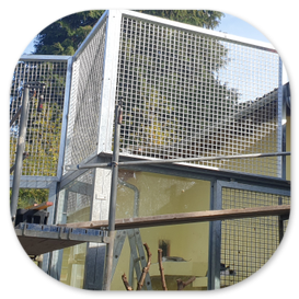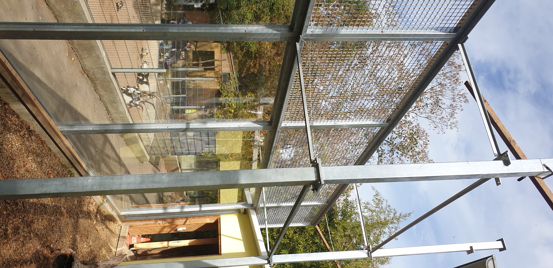 Der nächste Bauabschnitt ist fertig montiert. Nun wurde der letzte Abschnitt, das Netz ausgemessen und bestellt. Es müssen noch für die kleinen Schlupflöcher Rahmen und Gitter geschweißt und verzinkt werden um diese dann mit dem Netz aus Edelstahl zu montieren.