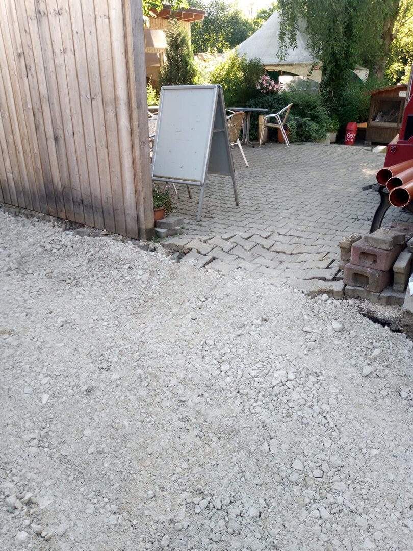 Zur Zeit wird oben am Kiosk die Terrasse und der Weg zur Toilette neu gepflastert. Wir versuchen alles so schnell wie möglich über die Bühne zu bringen, dass Sie so wenig wie möglich Einschränkungen haben. Trotzdem, kann es vereinzelt dazu kommen, dass Sie nicht den gewohnten Platz auf der Terrasse haben oder der Weg auf die Toilette kurzzeitig nicht begehbar ist.